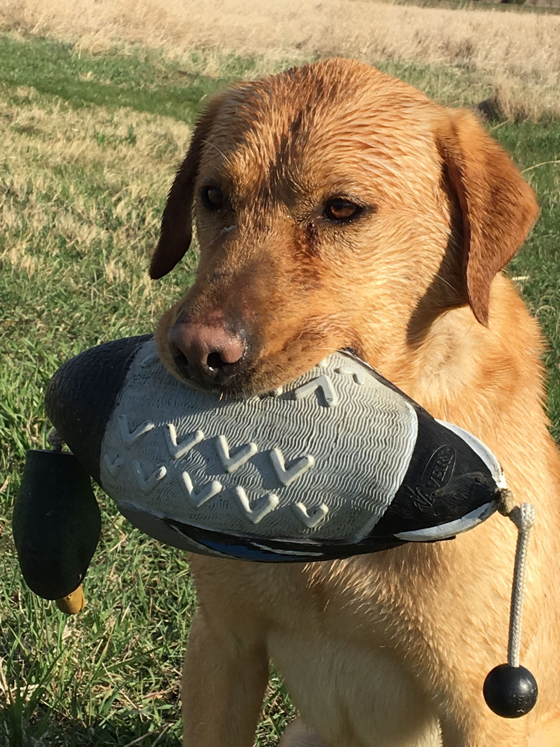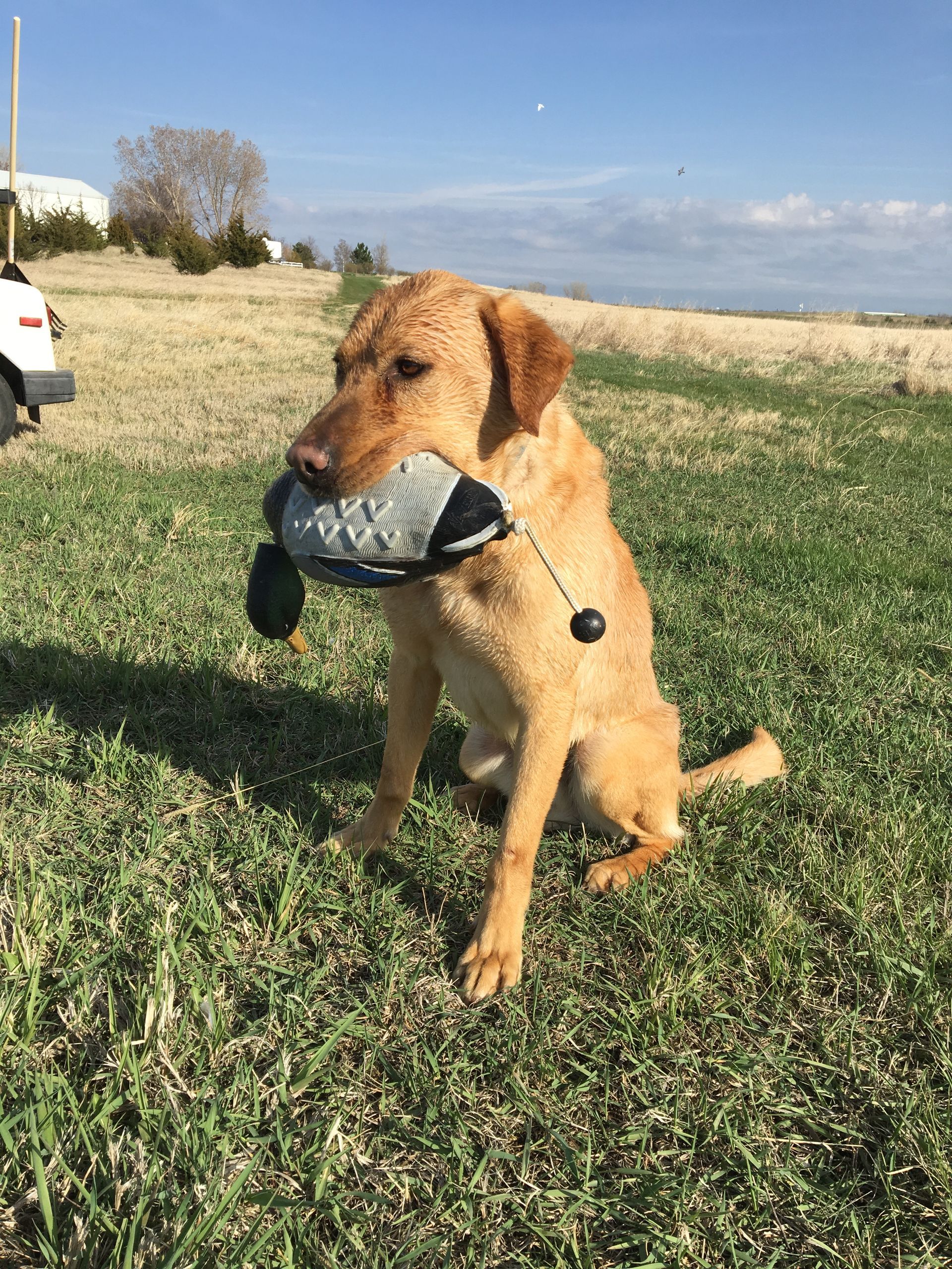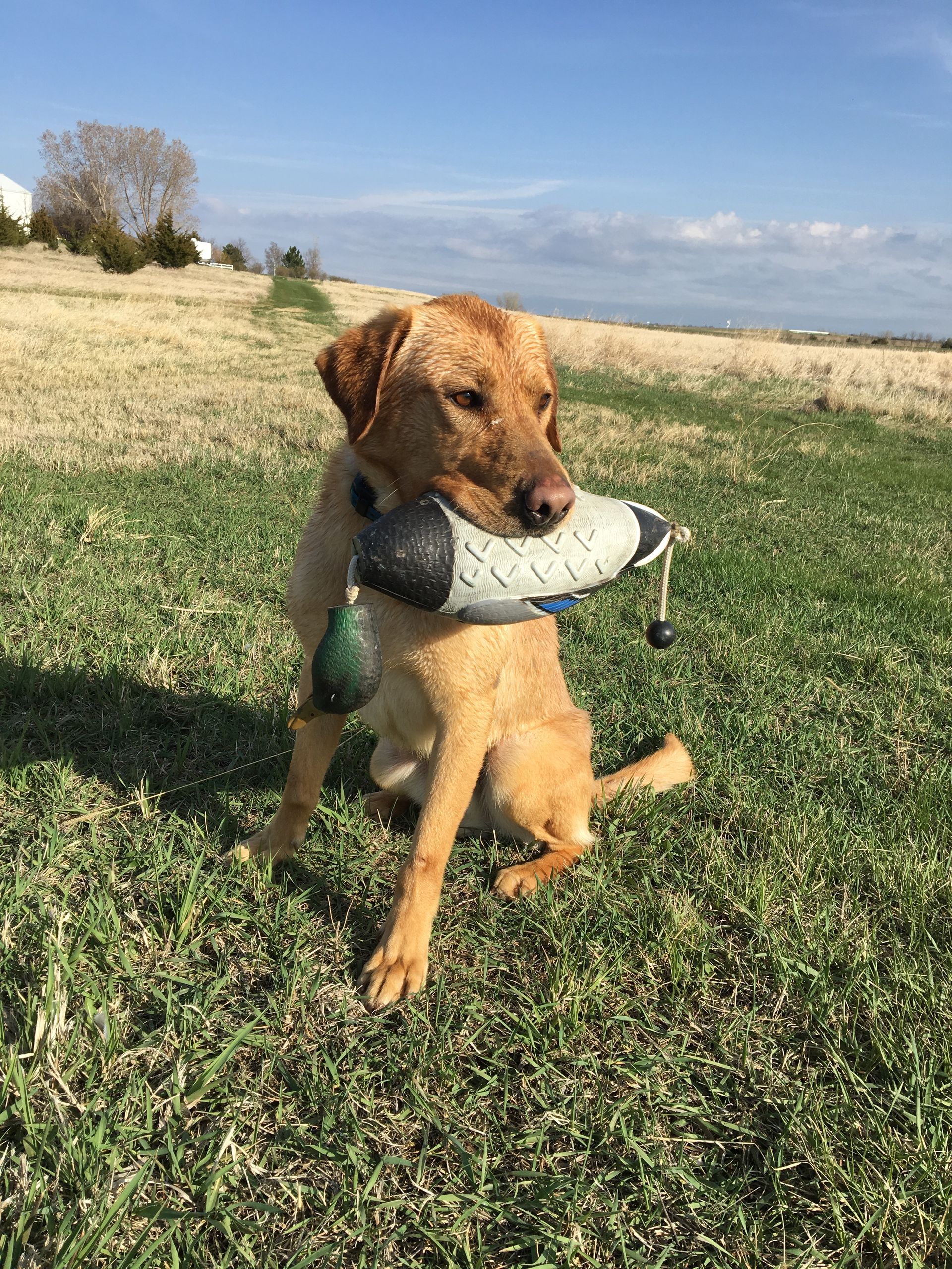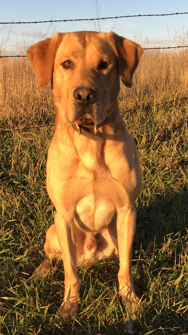 One of our sires, "Abe" is a 65-pound dark yellow Labrador Retriever with exceptional drive and skill in pheasant hunting. A talented flushing lab, Abe thrives on retrieving and working in the field. He has OFA-certified Excellent hips and clear eyes, is EIC clear, and has no known genetic issues or diseases. Abe consistently sires healthy black and yellow pups with strong builds and great temperaments. For stud pricing and breeding inquiries, please contact us directly.